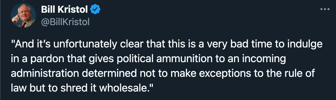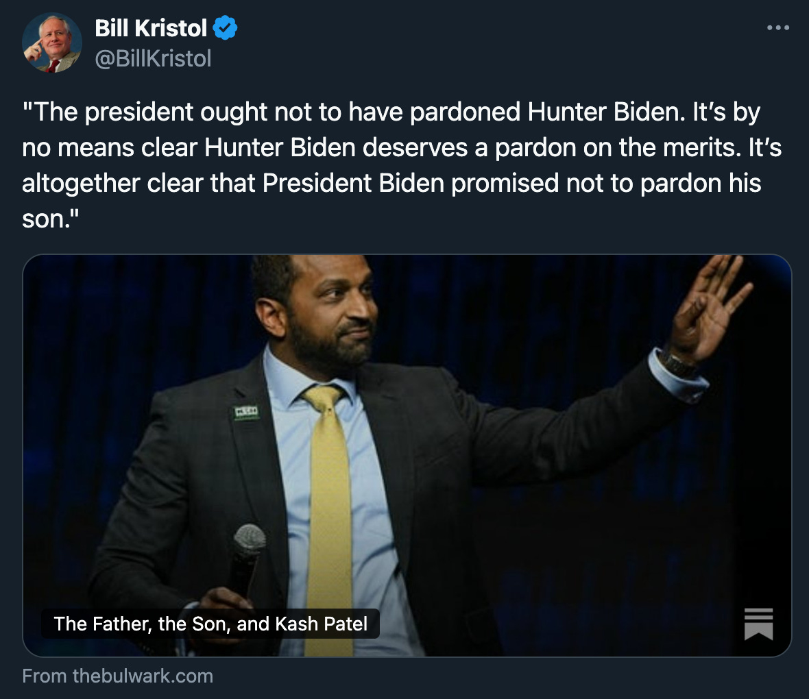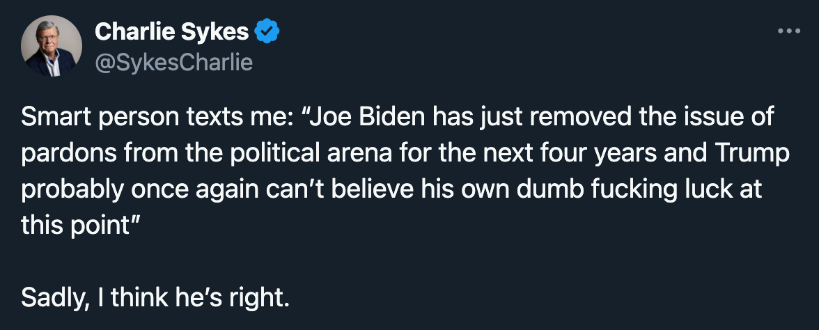 Likewise, Charlie Sykes says that Biden’s pardon “removed the issue of pardons from the political arena for the next four years.”