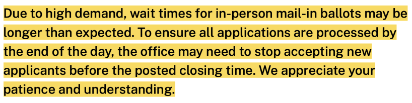 This was an excellent opportunity to sow confusion. Right-wing social media influencers quickly leaped into action, posting videos of workers cutting off the line. For President Trump's purposes, it doesn't matter that the offices have posted hours and the elections website has highlighted text that informs the public that the line might have to be cut short to ensure everyone can be processed..